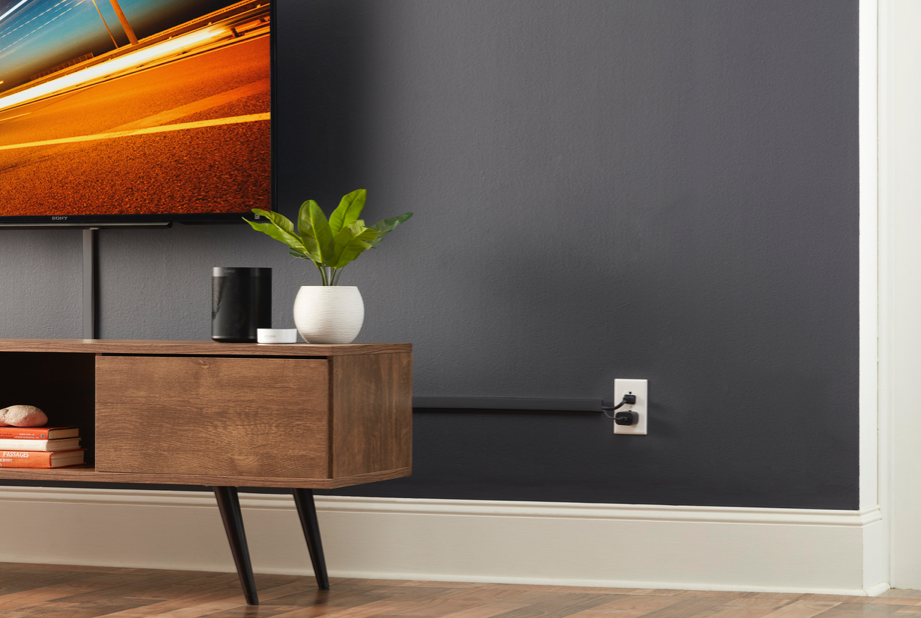 If you need to route your cables somewhere other than straight down, check out the raceway kit. It’s like building a Hot Wheels track and will transport you back to 1999 when everything was awesome. It comes with 12’ of cable tunnels that adhere to your wall. Just grab a level to make sure you’re going in a straight line. Now all you need to do is open the channel, add your cables, and snap on the included corner pieces. Slap some matching paint on the raceway if you have it and you’re done!